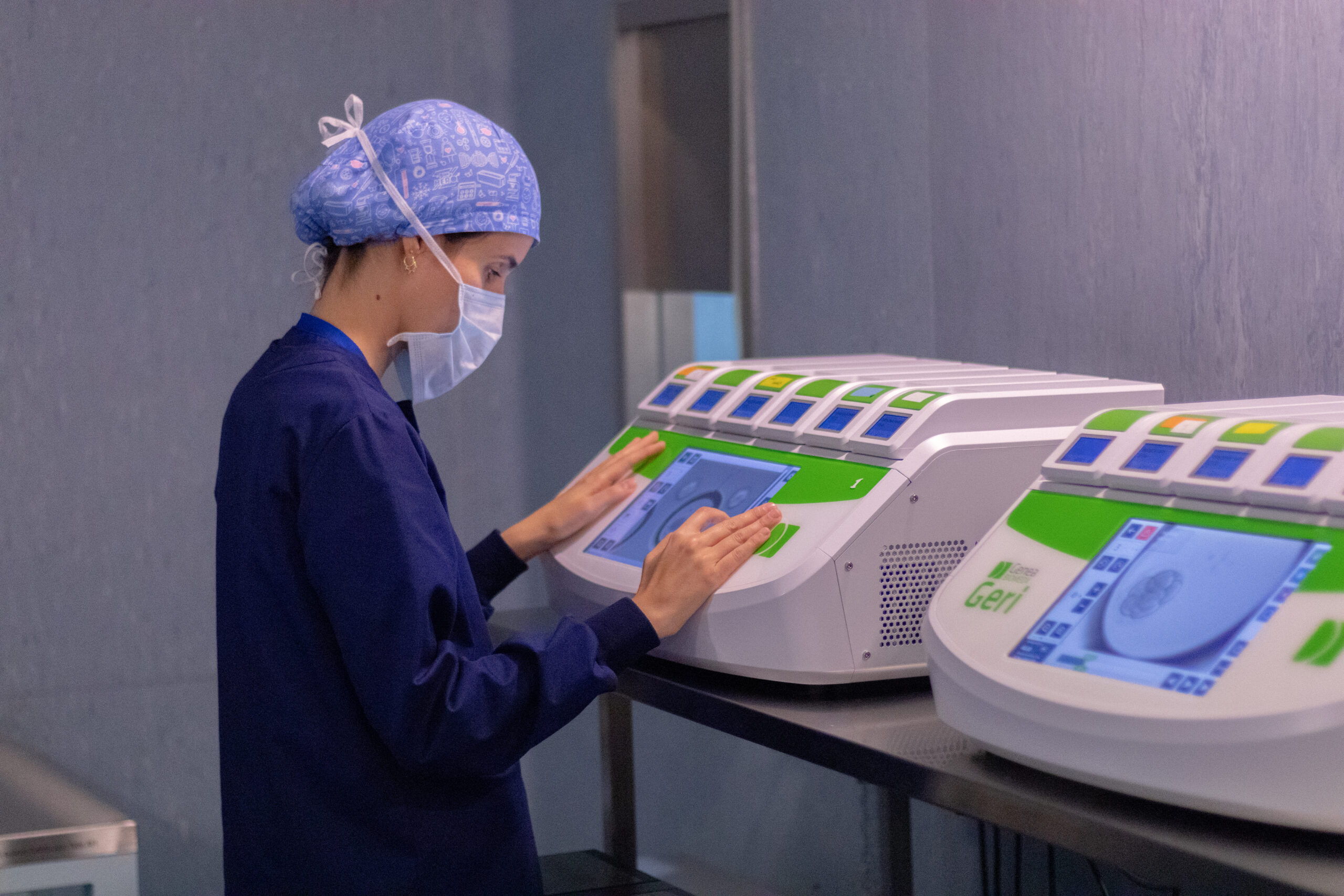 Die Embryologin erklärt, dass alle Inkubatoren in der Klinik mit Chloe™ synchronisiert sind. Das System überwacht alle Teilungen des Embryos und ermöglicht so eine detaillierte Analyse der Zellteilungen. Anhand dieser Daten und der Zeit, die sie für ihre Entwicklung benötigen, wird beurteilt, welcher Embryo die größte Fähigkeit zur Einnistung in der Gebärmutter hat. „Diese KI gibt uns eine Bewertung der Implantationsrate für jeden Embryo. Das System wird mit Millionen von Bildern gefüttert“, erklärt der Spezialist und fügt hinzu: „Es analysiert automatisch alle Parameter, von denen der Embryologe einige nicht sehen kann, und ist daher sehr hilfreich.