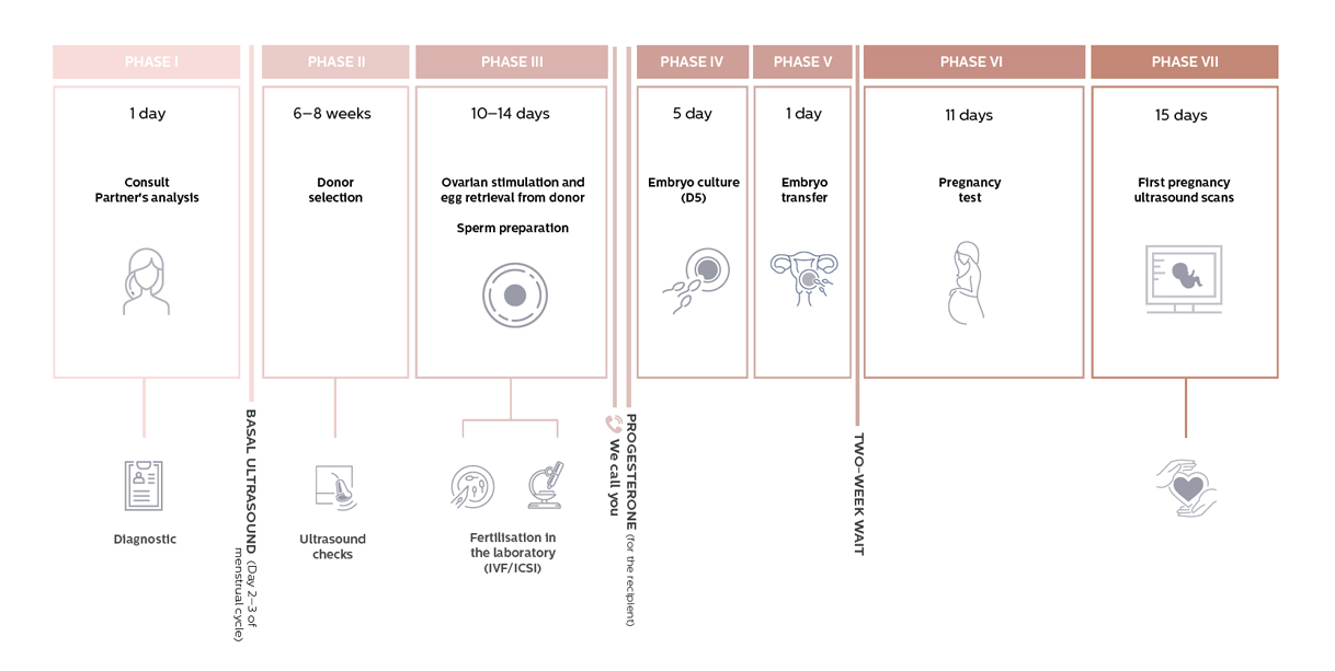 IVF-behandeling met eiceldonatie is de meest effectieve geassisteerde voortplantingstechniek. Er worden eicellen van een anonieme donor gebruikt om embryo’s van optimale kwaliteit te creëren. Bij dit type behandeling kan het sperma afkomstig zijn van de partner van de ontvanger, maar het is ook mogelijk om een donor te gebruiken.